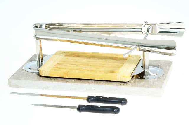 Pladenj je možno spraviti med nogi stojal za pršut s pravokotnim podstavkom.