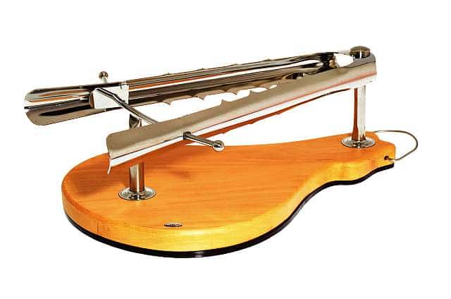 Podstavek: Masiven bukov les z zaobljeni robovi podložen s kovisko ploščo, ki mu daje dodatno težo in s tem togost ter stabilnost pri rezanju.